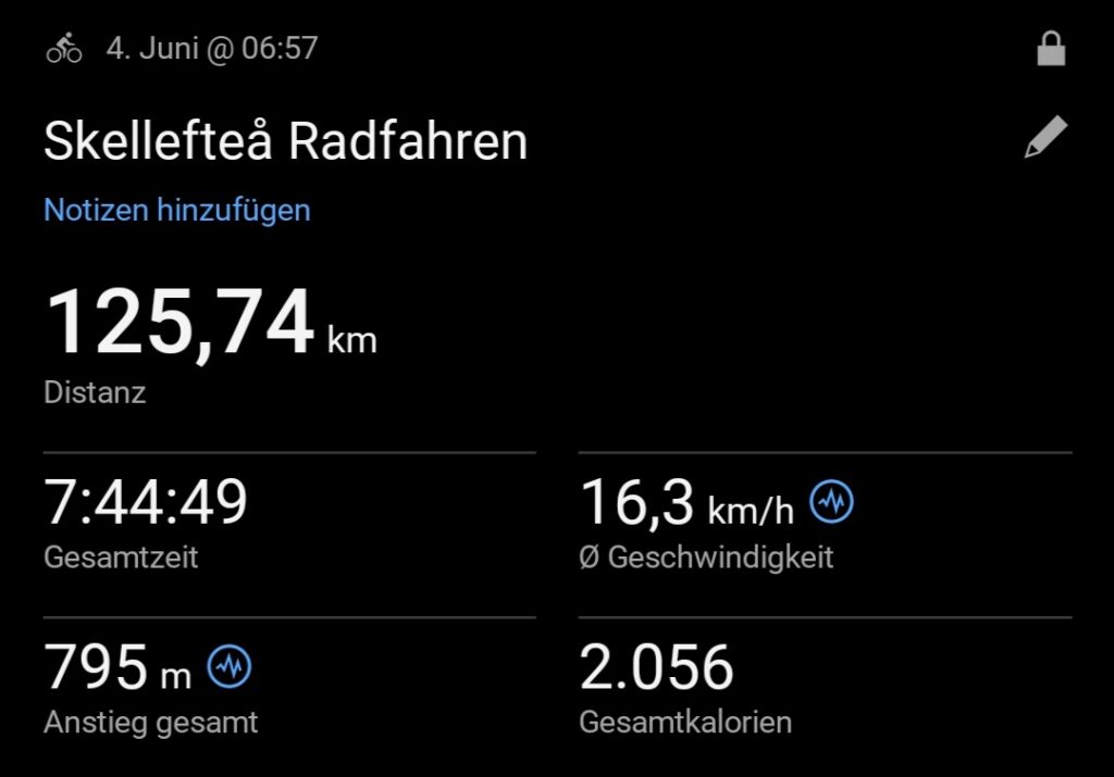 Morgen geht es ins Landesinnere, dann kurz durch Finnland und dann nach Norwegen. Es ist nicht mehr weit bis zum Ziel, aber jetzt wird die Herausforderung noch größer.In Lulea gehe ich wieder in ein Hotel. Ich habe heute die Küsten-Etappe abgeschlossen und eine gute Leistung gebracht. Ich möchte mich damit belohnen. In der Nacht wird es wieder regnen und es wird immer noch kalt. Und das ist der eigentliche Grund.